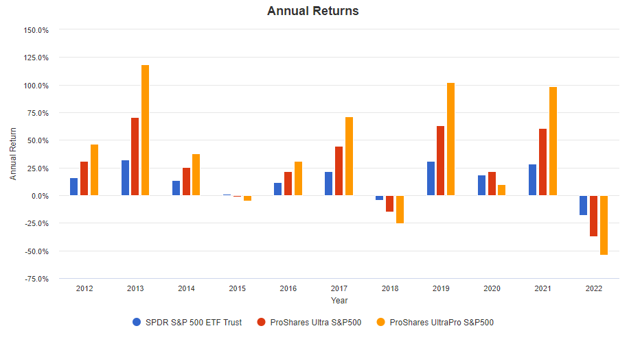 과연 레버리지 상품인 SSO와 UPRO는 정확히 2배, 3배의 성과를 보여줬을지!